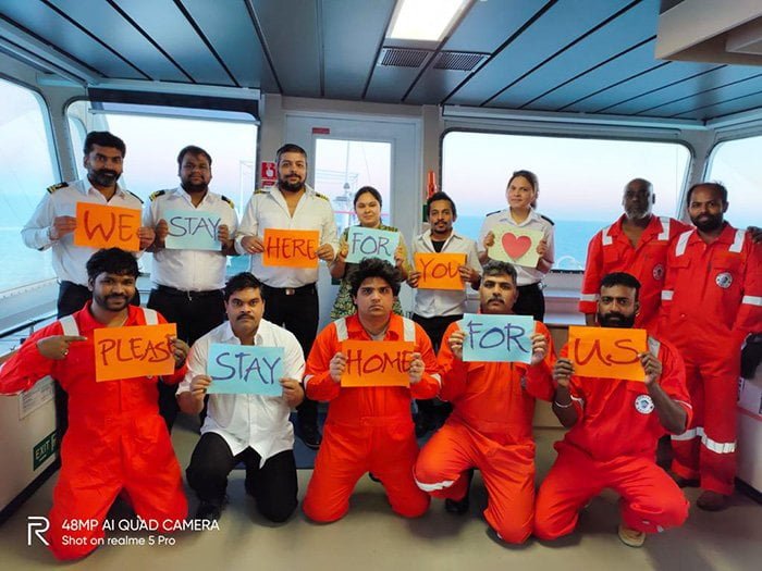 Synergy team seafarers define message to those onto land: “We stay here for you. Please stay home for us”