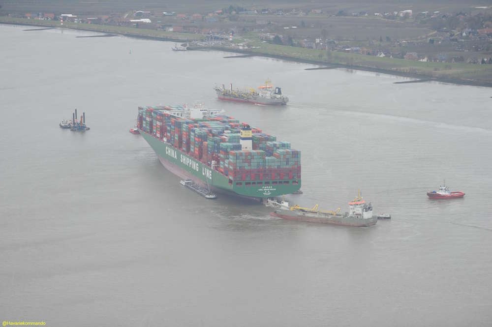 Crews Working to Refloat One of World’s Biggest Containerships Still Stuck in Germany
