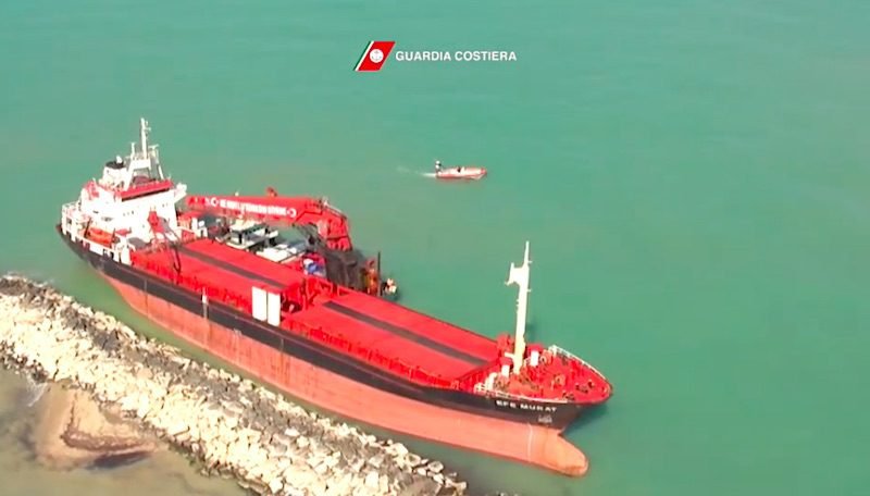 The Turkish- flagged ship ran grounded February 23rd as winds along the Adriatic shore covered greater than 60 knots.
