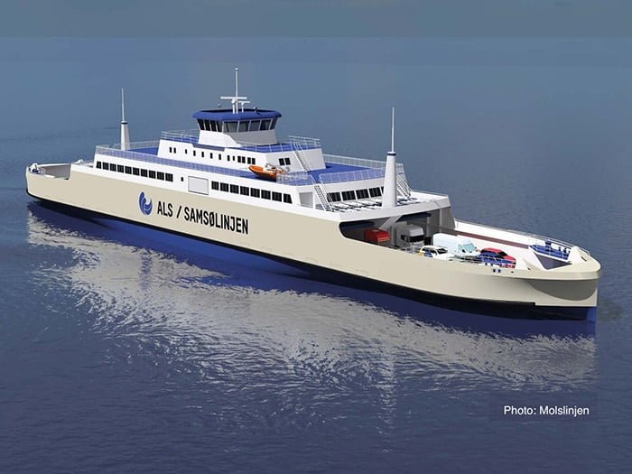 Designed by OSK-ShipTech A/S, the double-ended ferries may have a capability of 600 passengers, and 188 automobiles and a complete size of 116.8 meters. They will serve on two routes – Alslinjen (Bøjden-Fynshav) and Samsølinjen (Ballen-Kalundborg) — awarded to Molslinjen in August.