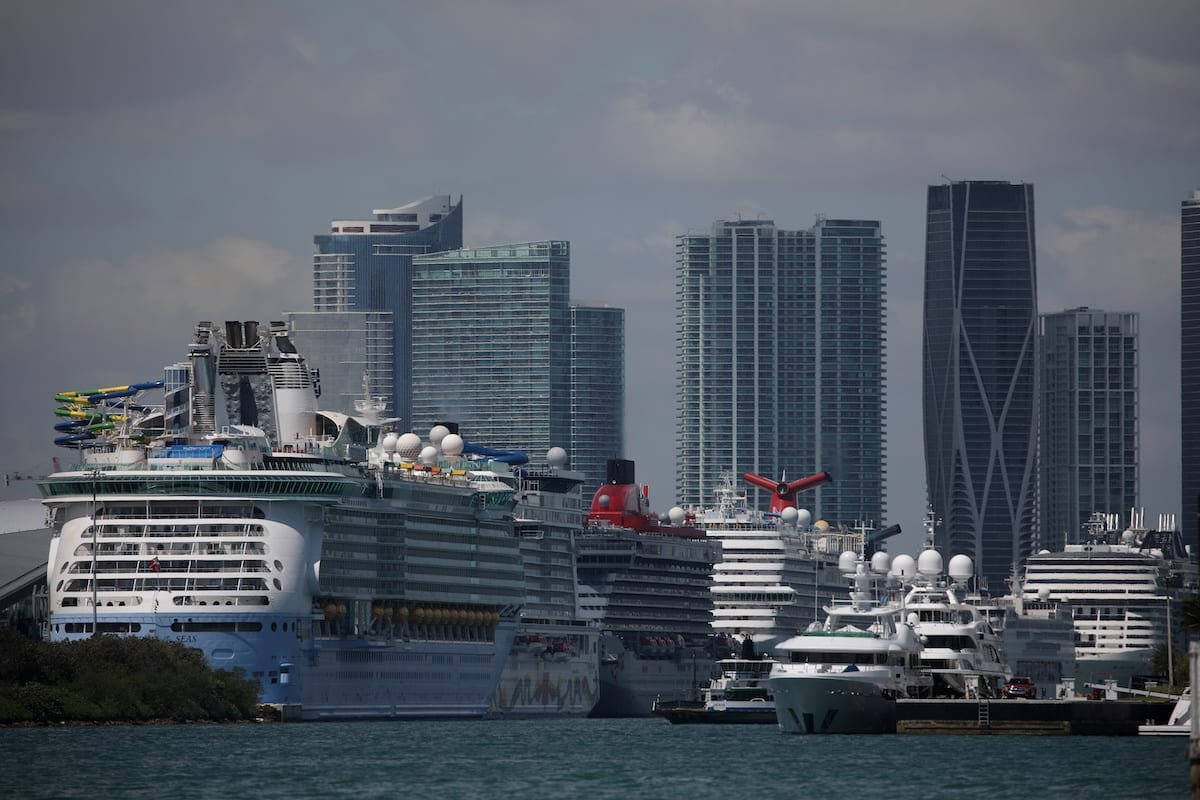 Cruises ships are seen anchored at Miami port as the tourist market is impacted by the spread of the coronavirus illness (COVID-19), in Miami, Florida, UNITED STATE, March 18, 2020. REUTERS/Carlos Barria