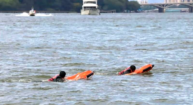Unmanned Rescue Equipment Demonstrated In Water Emergency Rescue Drill