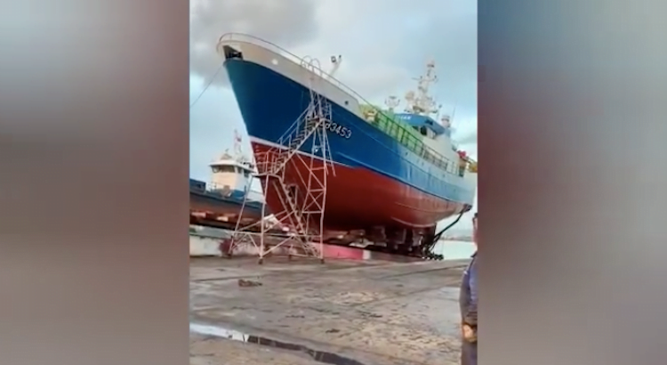 Watch: Fishing Boat Topples at Repair Yard in Spain