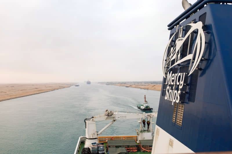 The Global Mercy sailing down the Suez Canal.
