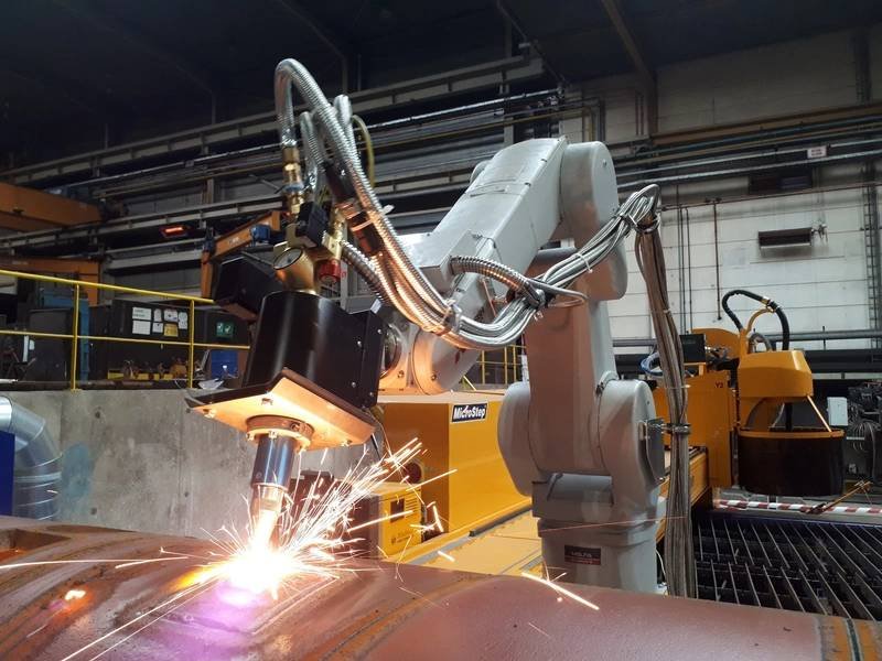 “First of all,” clarified Pycke, “because weld preparation is now done automatically and in one step, the plasma/oxyfuel cutting machine with the integrated robot arm has resulted in considerable time savings. This has also increased quality. As to the pipe cutting, not only has our reach been increased, but we can also cut any shape. In terms of flexibility, we have improved significantly.”